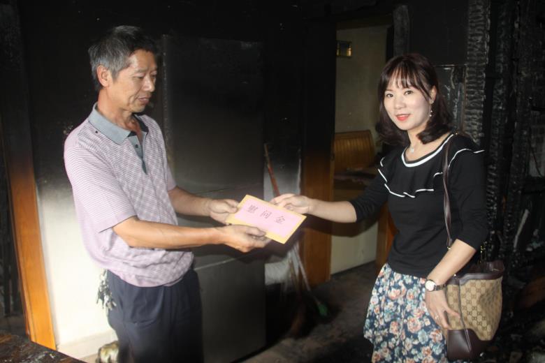 本网讯,受王道光董事长的委托,公司副总经理胡兆萍,行政总监彭艳,安装售后部副部长李玉平9月27日来到电控车间员工陈祖亮家,对其因意外火灾,造成家庭严重受损,表示